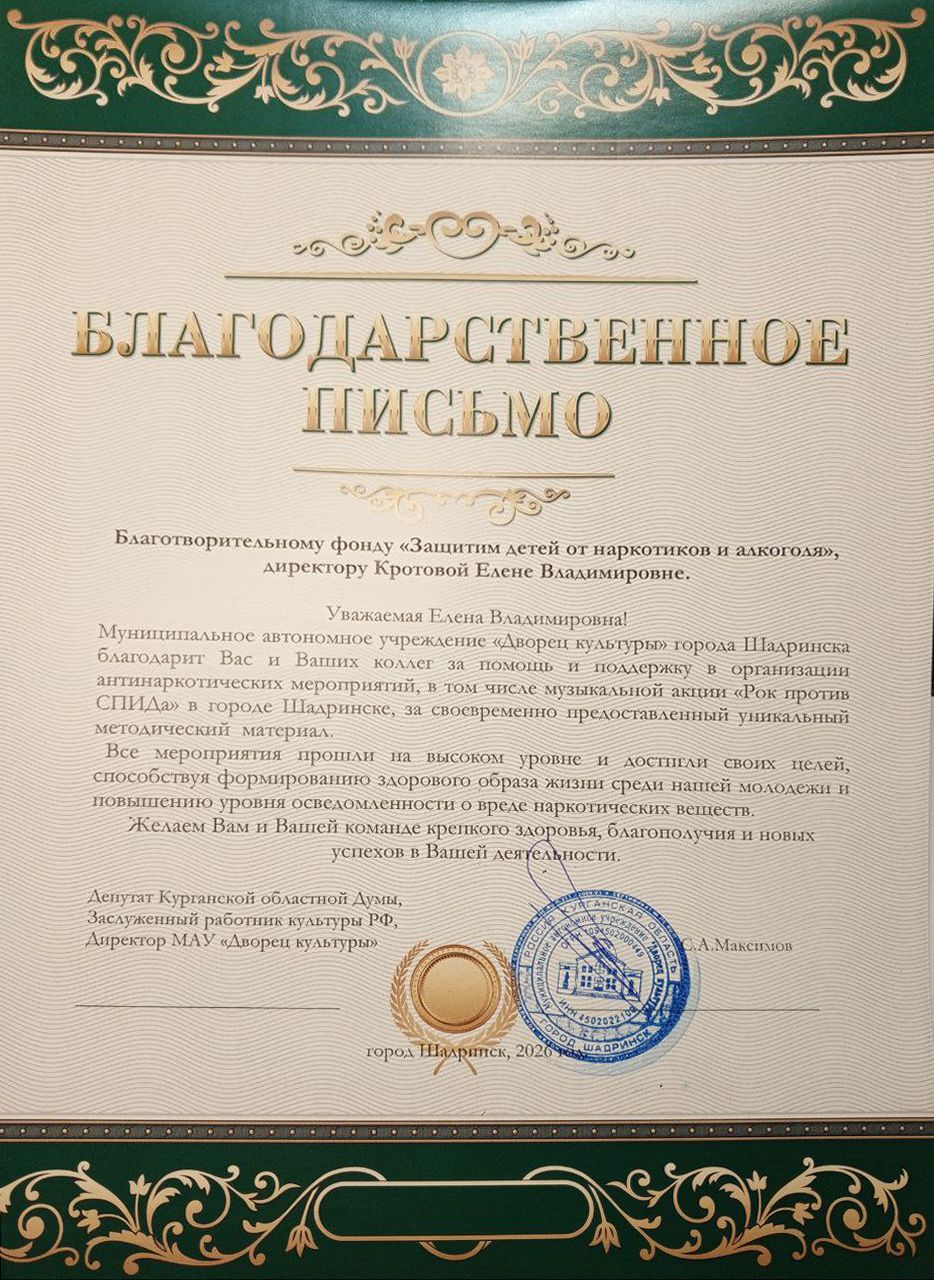 Наш фонд активно занимается антинаркотической профилактикой, и его цель – это снизить количество людей, употребляющих наркотические вещества в немедицинских целях, снизить количество людей, впервые начинающих употреблять наркотики, а также создать в обществе атмосферу неприятия наркомании как явления, и, как следствие, неприятия производства и распространения наркотических веществ. Более подробно смотрите здесь »